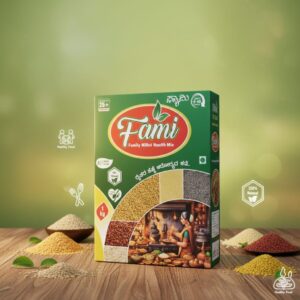 With nutrition in a super healthy powder our farmers are trying to keep us healthy. So we must start our day with Fami. A source of energy builds our strength it is required to keep our immunity better and make it boost. With the whole grains likePearl Millet, Foxtail Millet, Kodo Millet, Little Millet, Barley, Jave Wheat, Barnyard Millet, Proso Millet, Browntop Millet, White Sorghum, Brown Rice, Finger Millet (Ragi), and other pulses and grains.